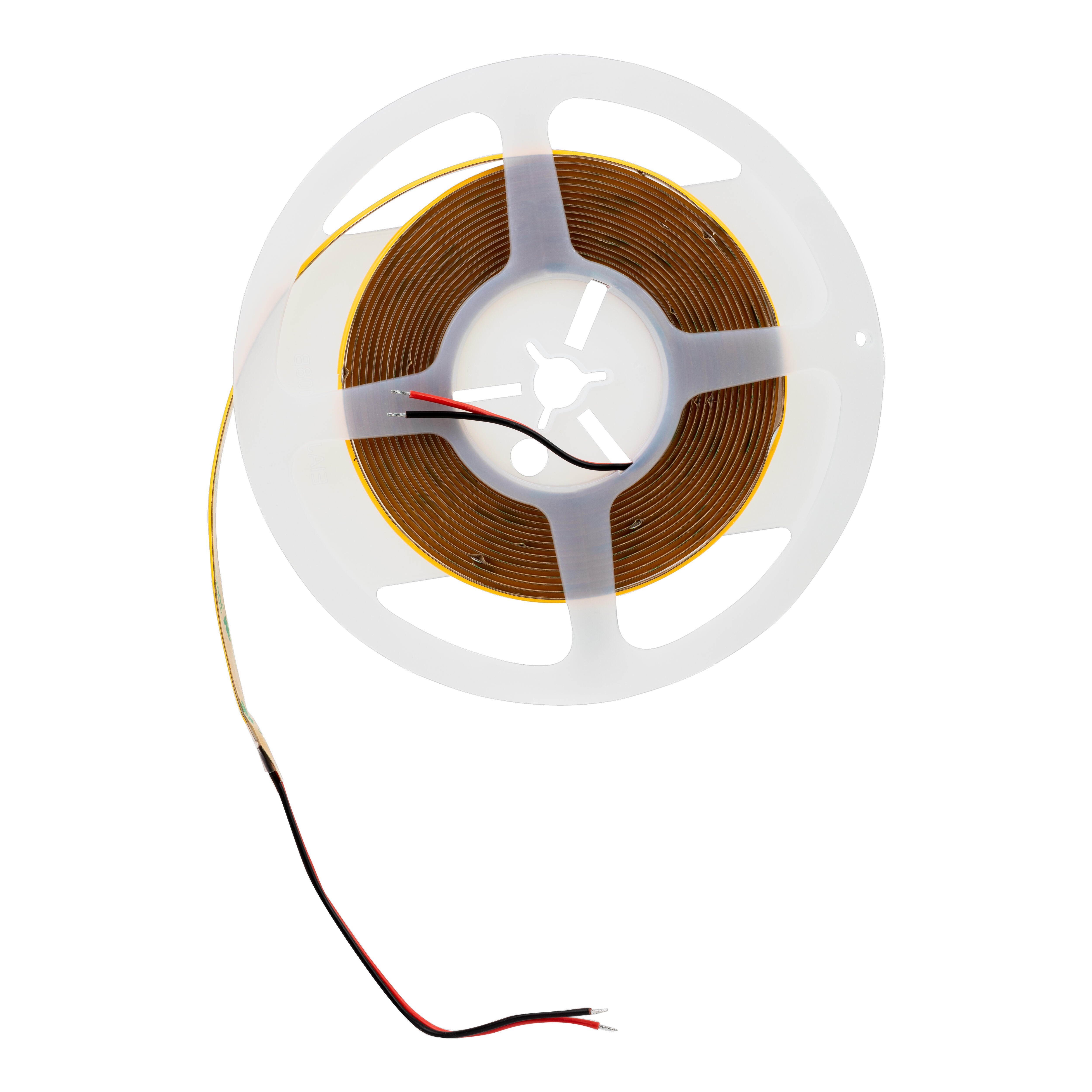 Tira led COB 24V, rollo de 5m, potencia 10W/m. Luz neutra, 4000ºK. Grado de protección IP44. Flujo luminoso 384lm/m. Con posibilidad de regulación.