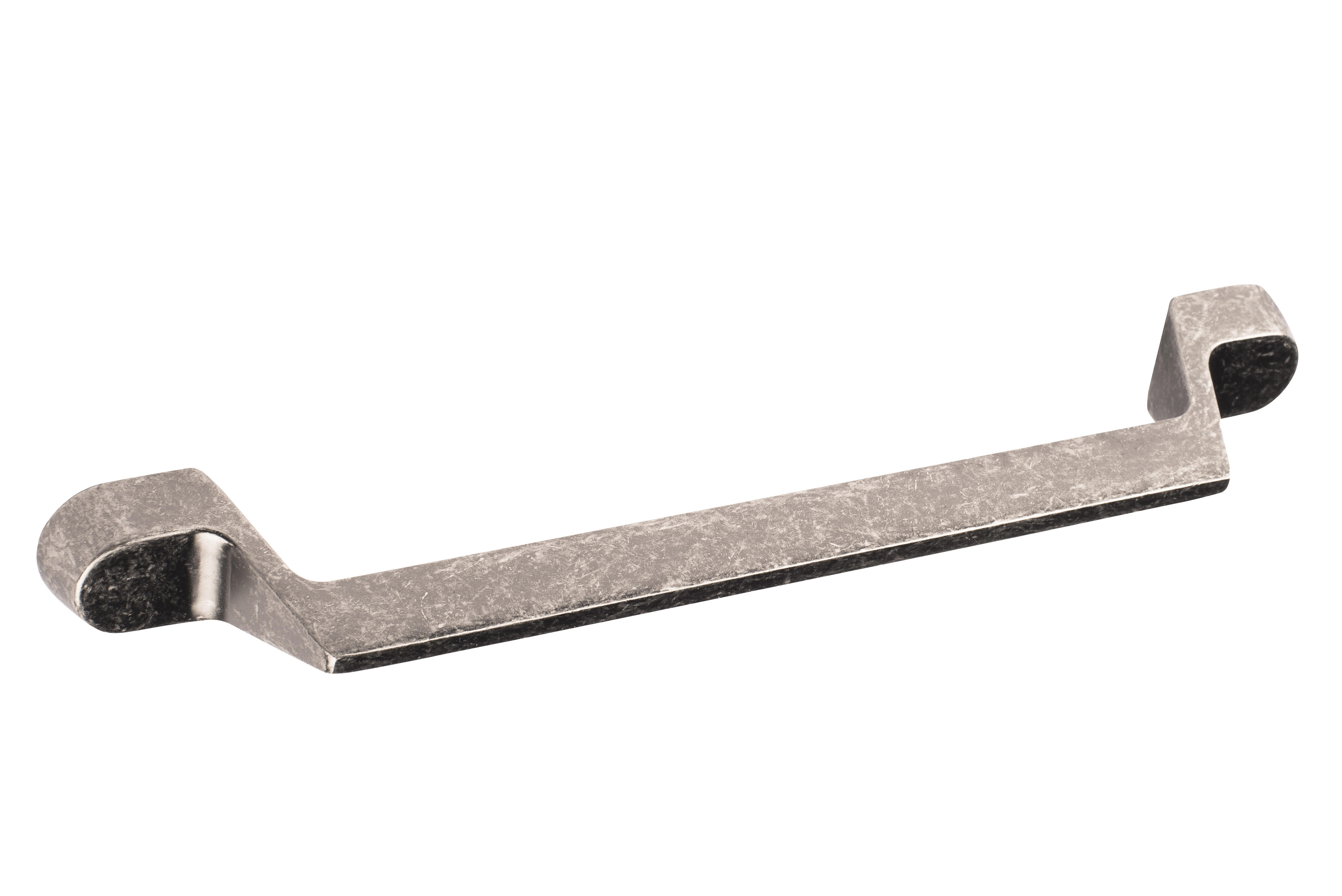 Tirador metal zamak para mueble con acabado plata vieja de 160 mm