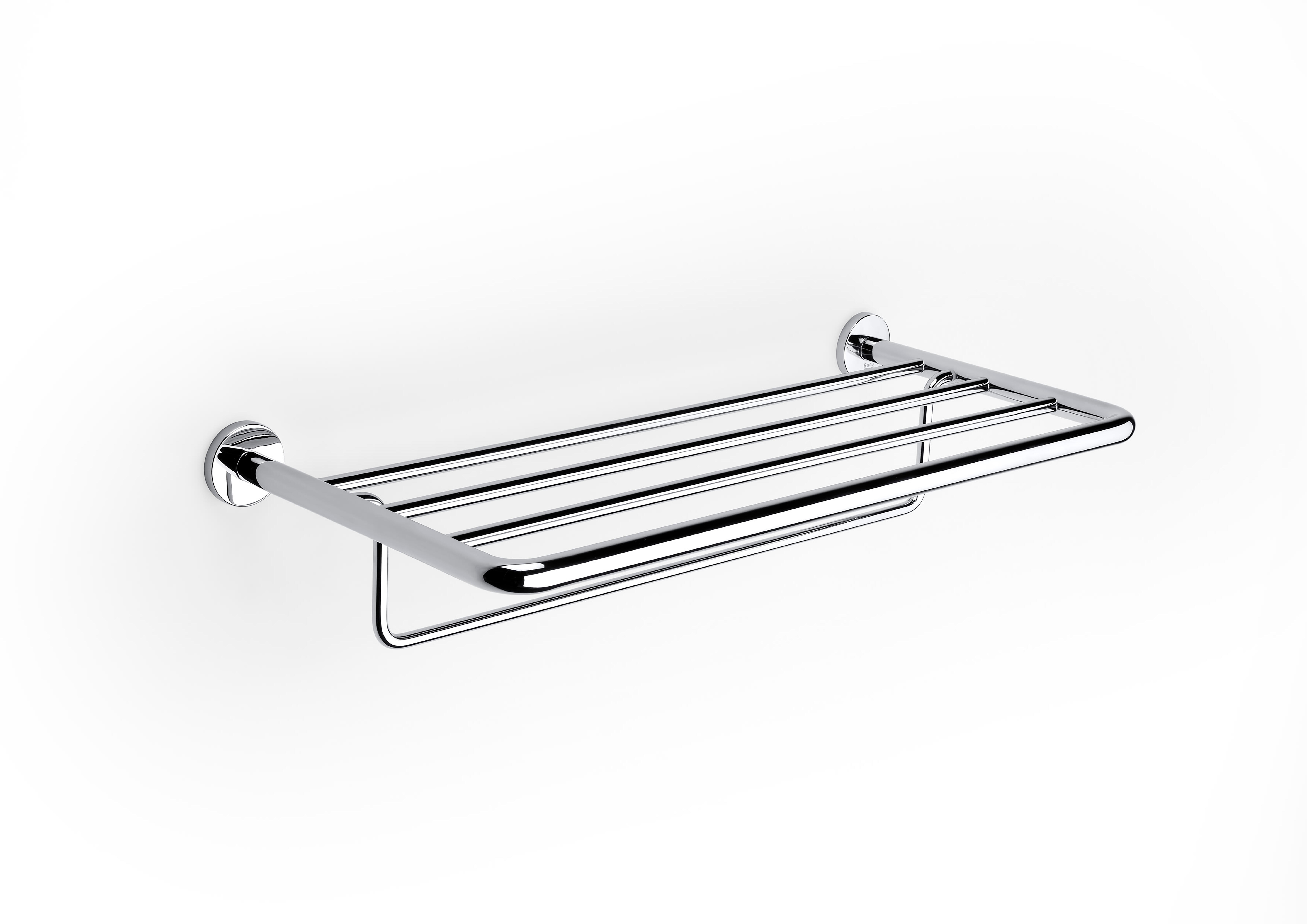 Toallero con portatoallas fabricado en metal, acabado cromado brillo. De instalación a pared. Antivandálico.