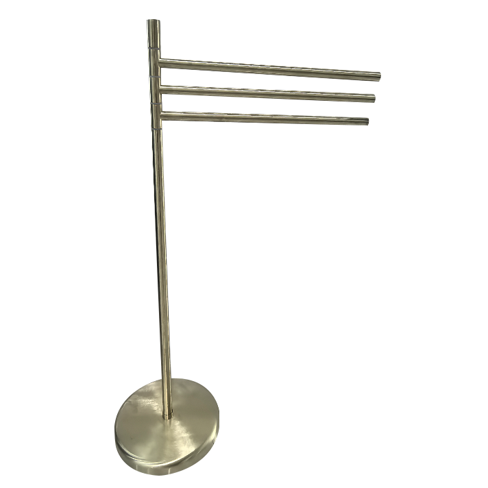 Toallero de ducha a suelo con 3 barras, acabado PVD oro cepillado. Fabricado en acero inoxidable.