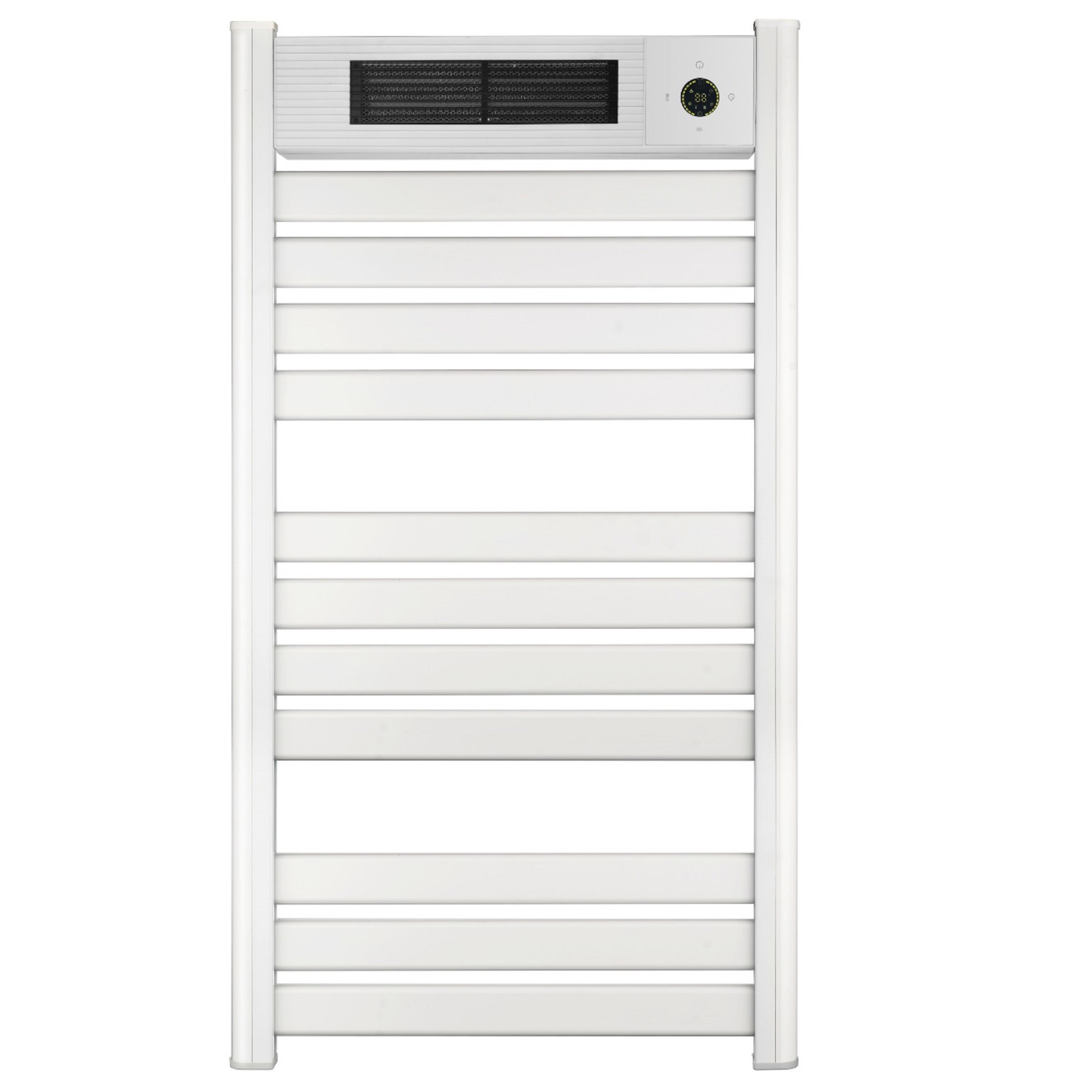 Toallero eléctrico 500W con split de 2000W incorporado. Acabado en color blanco, fabricado en aluminio con inercia seca. Termostato digital con pantalla LED y temporizador 24h.