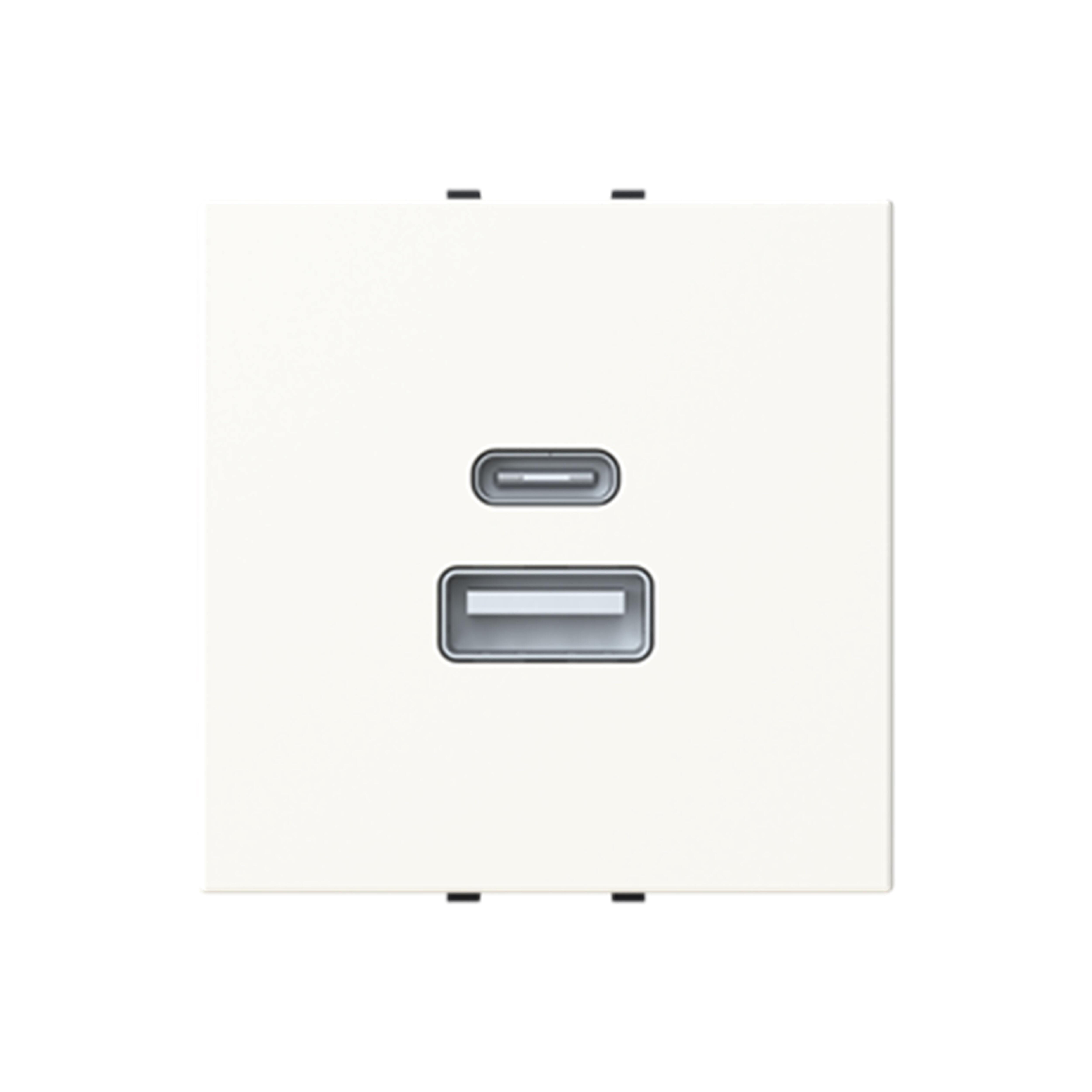 Toma cargador USB doble (A+C) de empotrar de la serie Zenit, marca Nessen, ocupa 1 elemento. Color blanco.