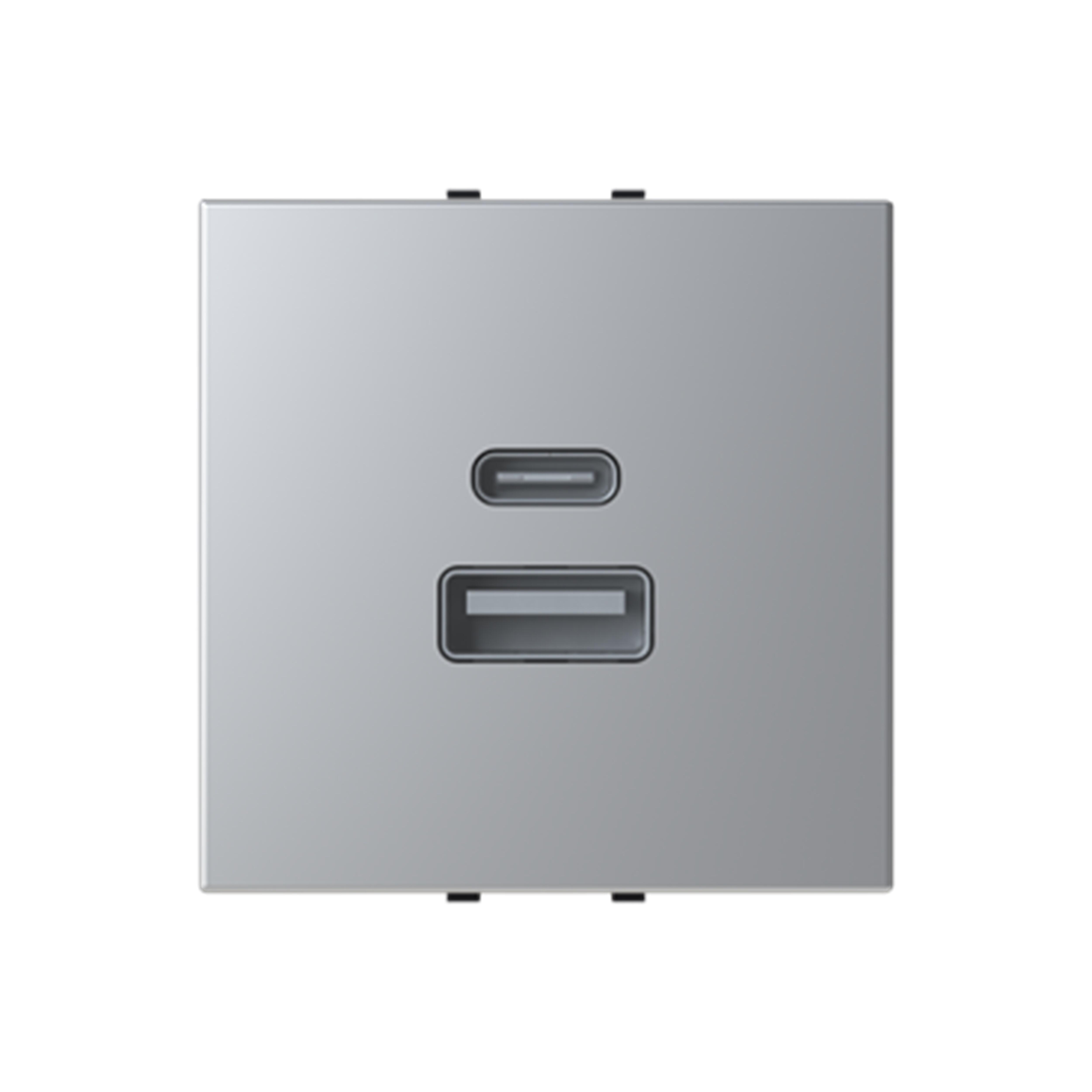 Toma cargador USB doble (A+C) de empotrar de la serie Zenit ,marca Niessen, ocupa 1 elementos. Color plata.