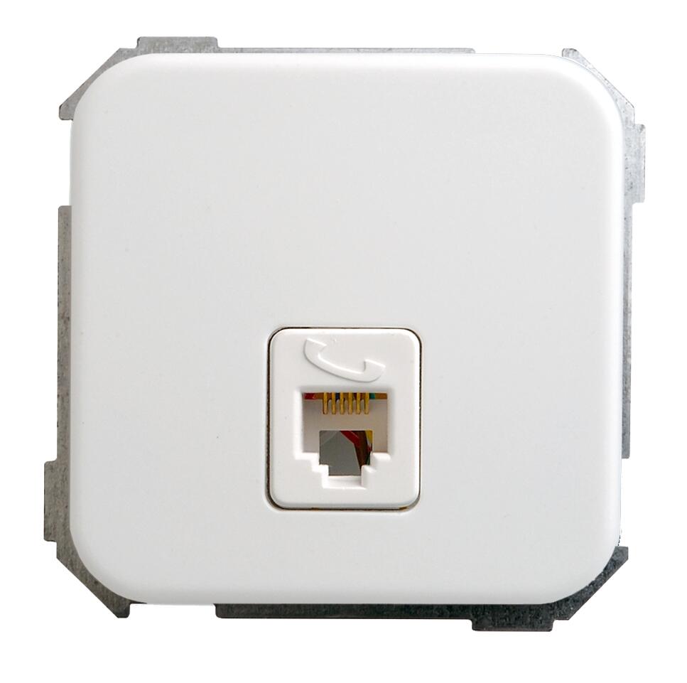 Toma telefonica con 4 contactos RJ11. El producto tiene unas dimensiones de 45x45 mm. Contiene Componentes metalicos que estan protegidos con aislamiento libre de halogenos. La pieza es apta para superficie y empotrar. Para un optimo mantenimiento, puede limpiar la pieza con un paño suave y ligeramente humedecido en agua jabonosa.