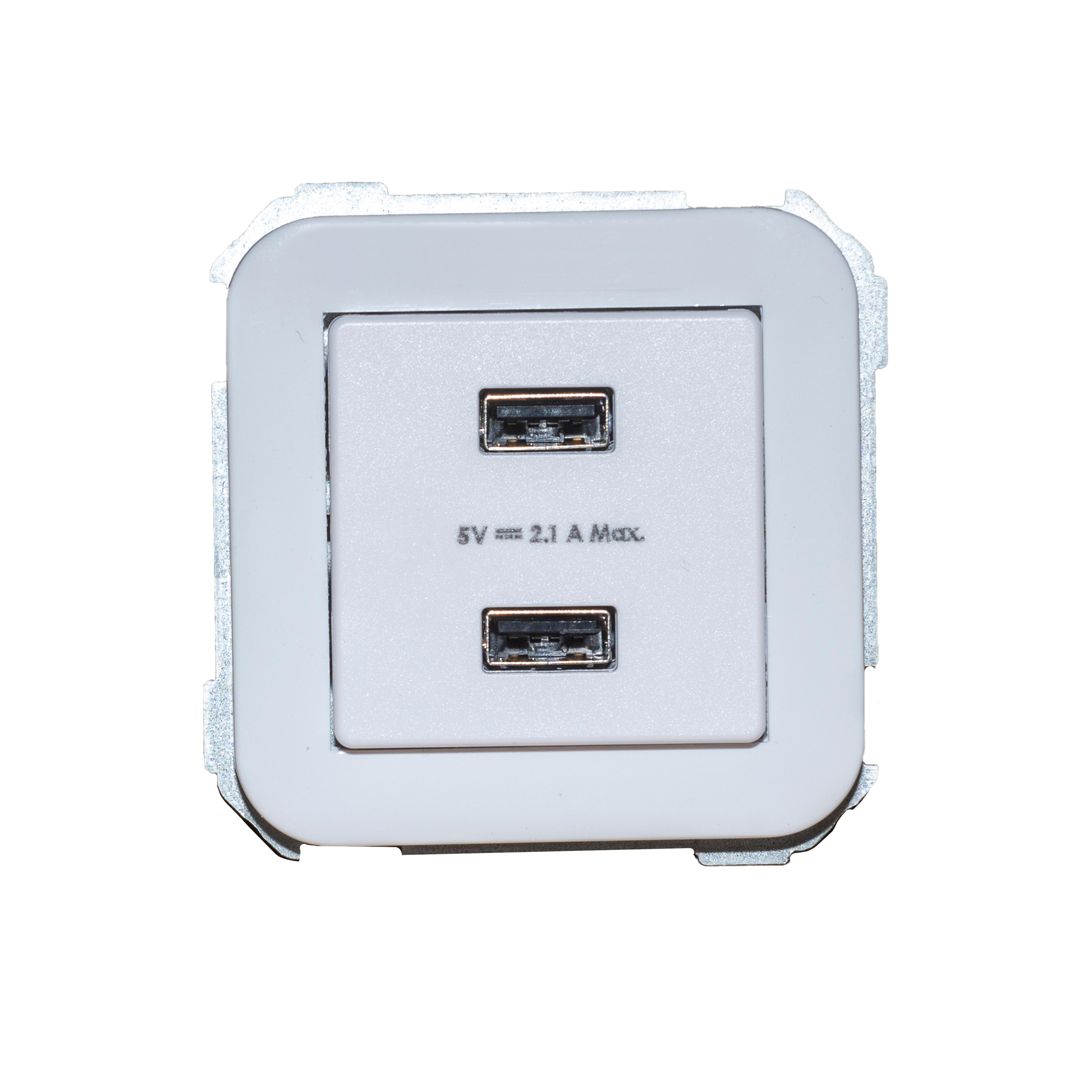 Cargador usb doble 5v/dc 2.1a tipo a hembra + placa adaptadora. Color blanco. Simon 31