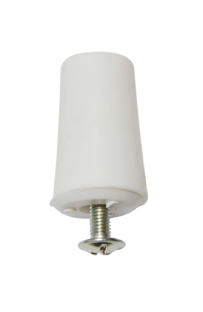 Tope para persianas de 40 mm de diámetro, esencial para evitar que la persiana se desplace dentro de la caja. Incluye tornillo y arandela para una fácil instalación. Acabado en color blanco para una integración discreta.