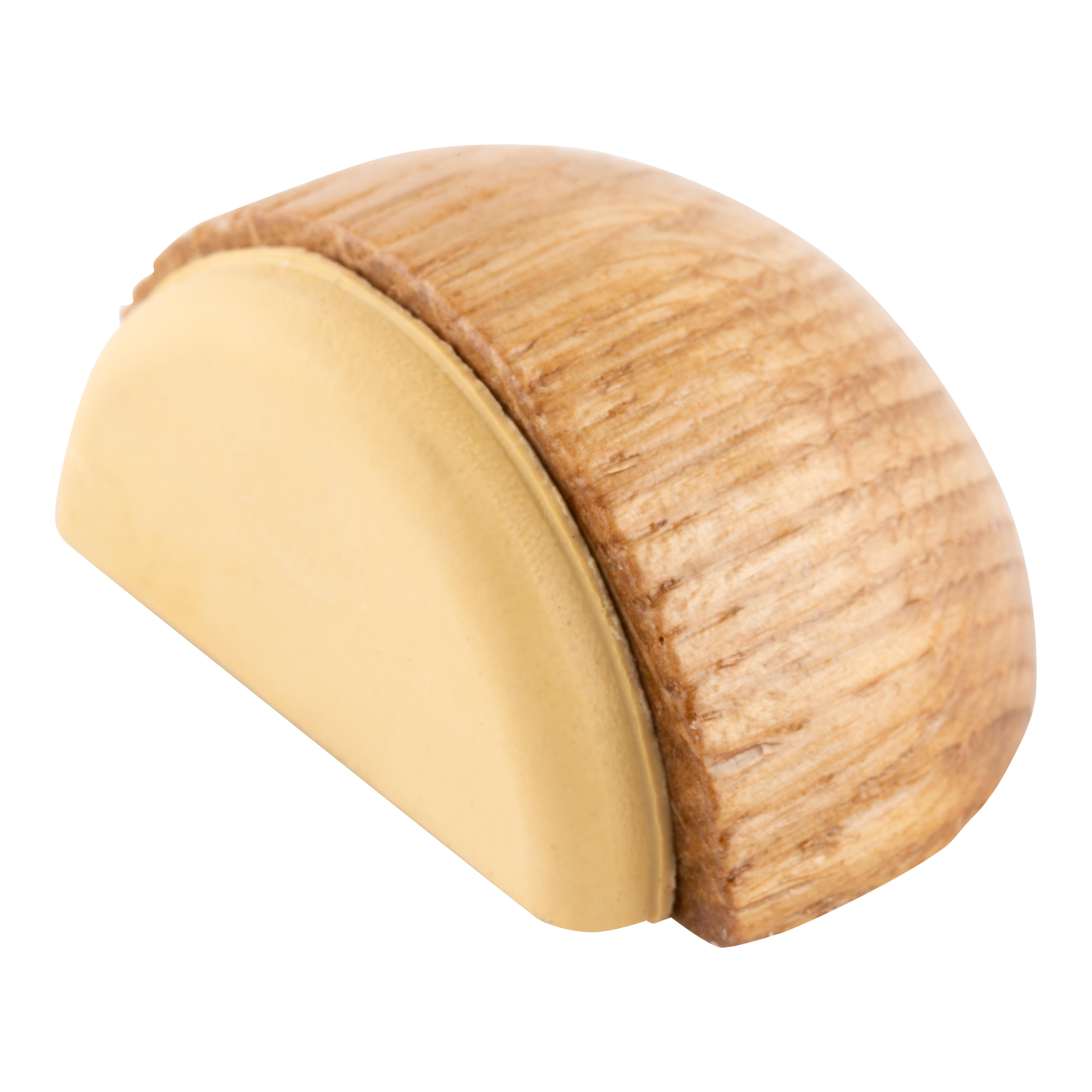 Tope de madera para puerta adhesivo semiesférico con pieza caucho amortiguadora roble 2uds mod 2039 INOFIX.