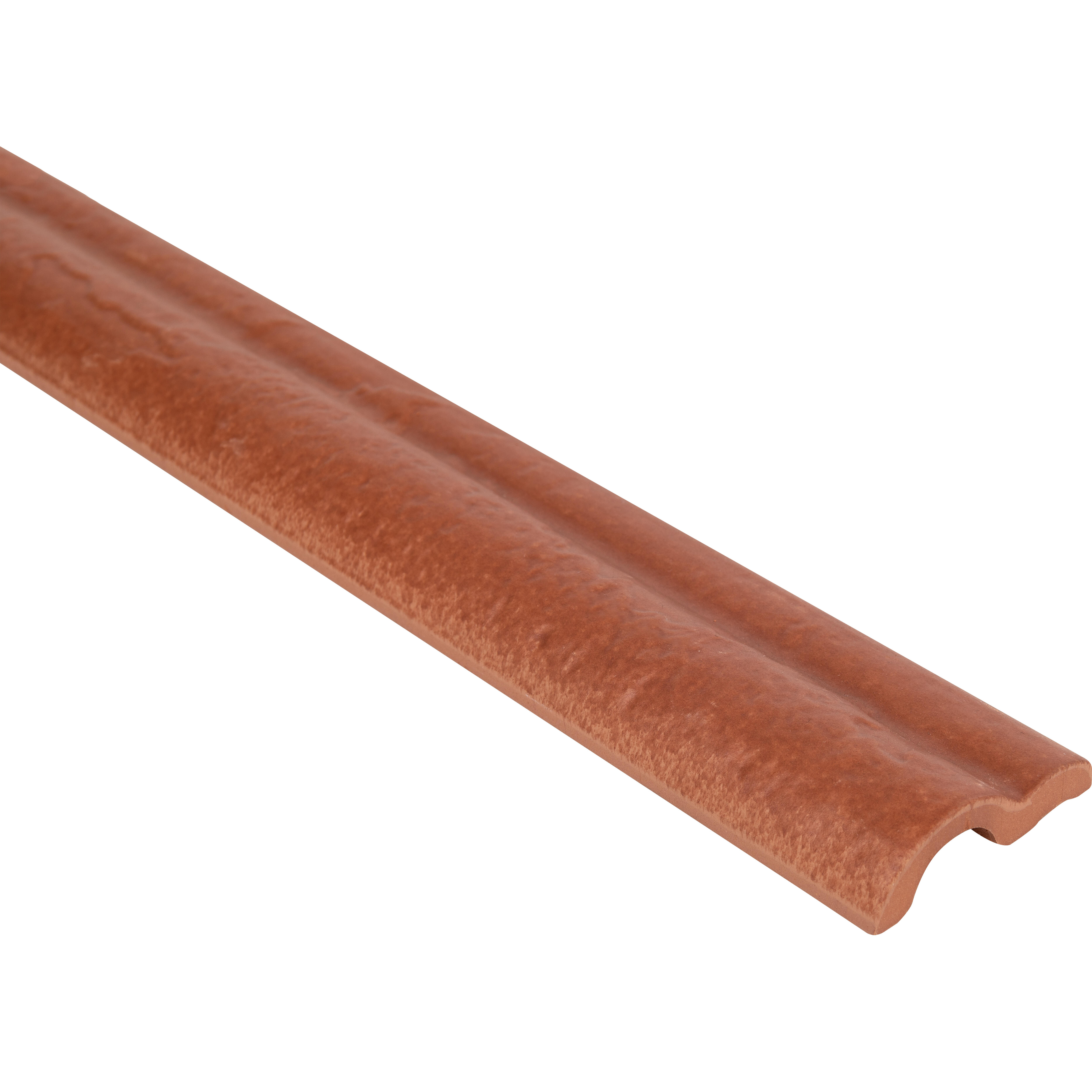 Torelo rústico de cerámica fabricada en pasta roja. Se utiliza para rematar revestimientos. La pieza mide 5x33 cm. Se vende por unidad.