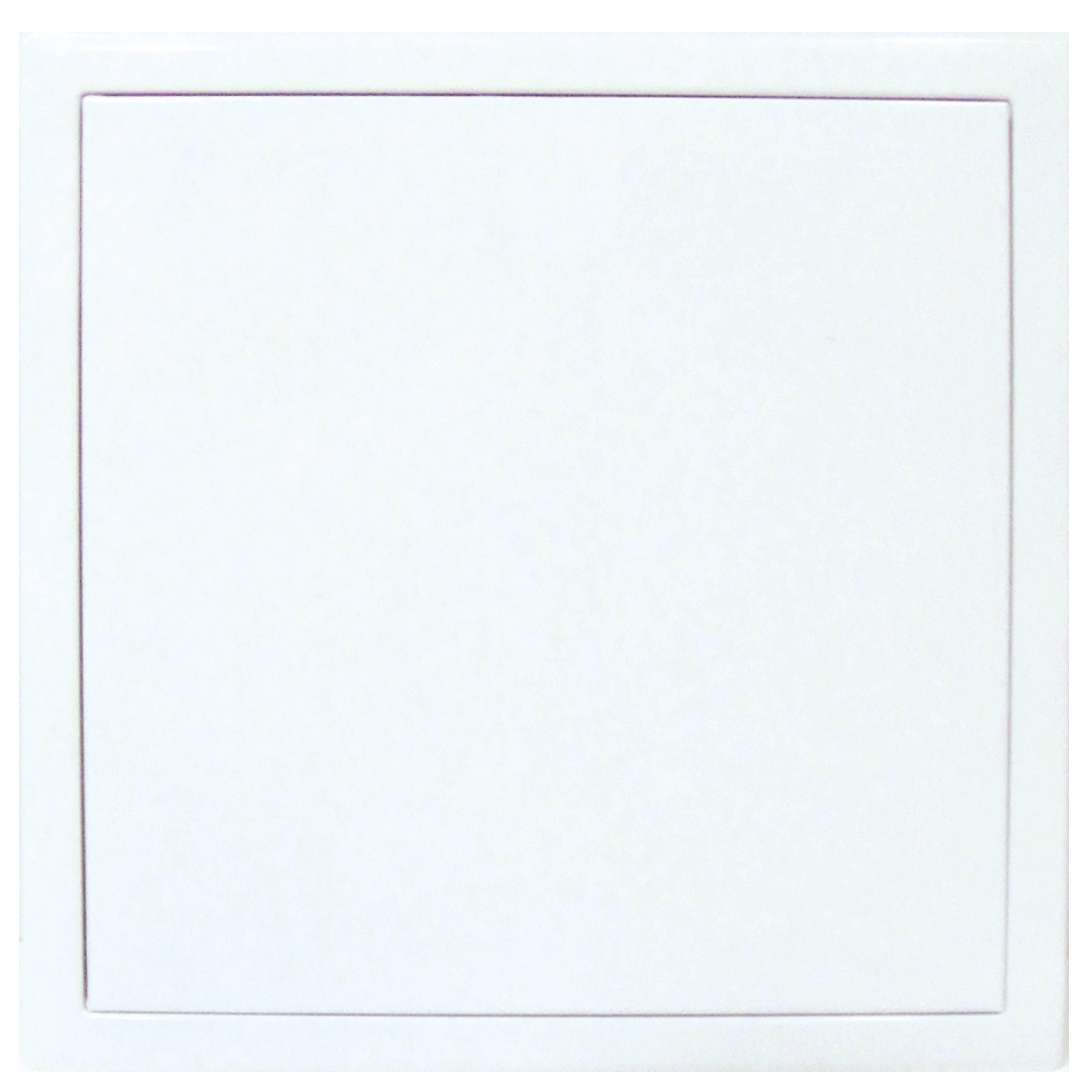 Trampilla de acero galvanizado con revestimiento en blanco. Su sistema de apertura es tipo clic. Cierres ocultos. Dimensiones: 60 x 60 cm.