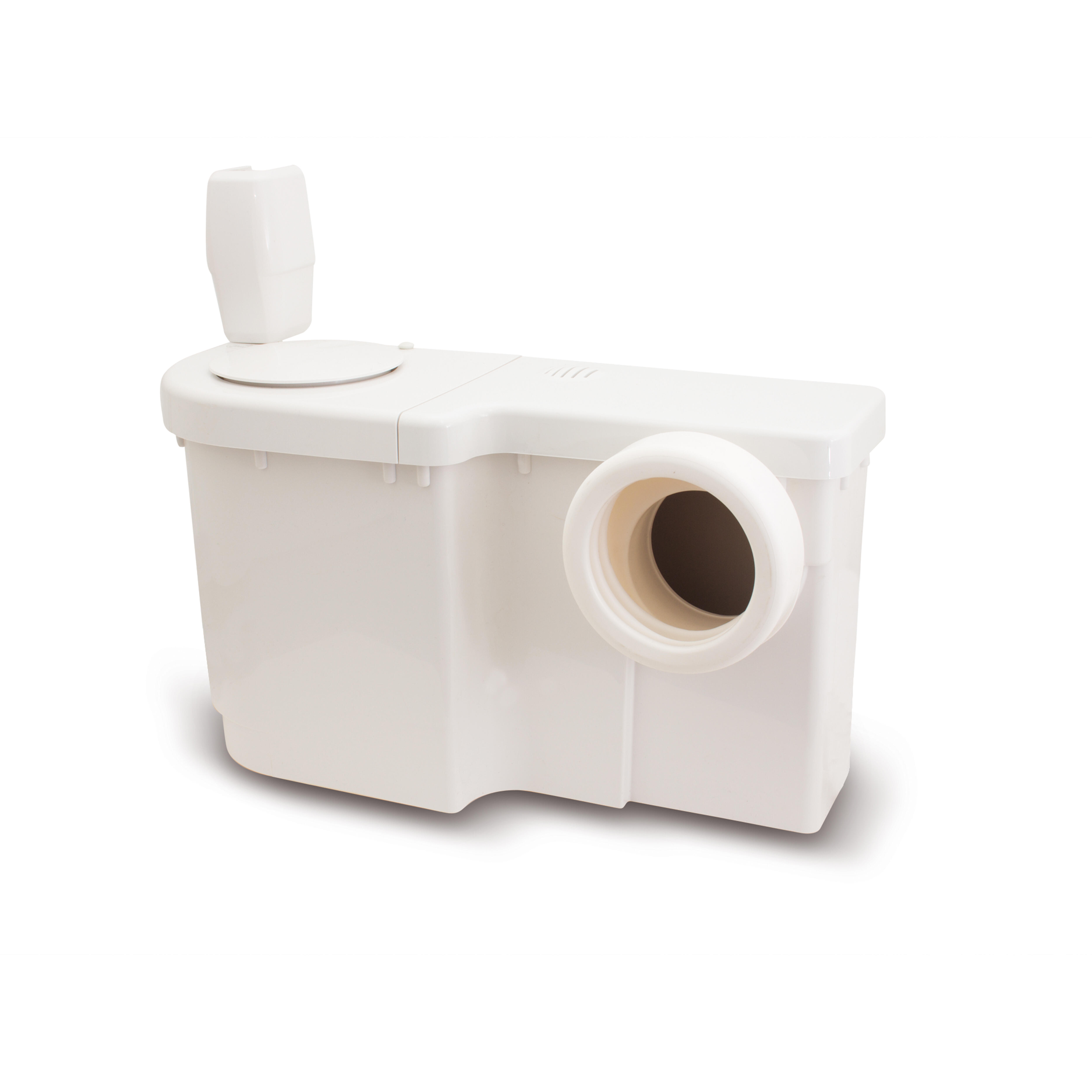 Triturador sanitarios con toma WC y conexiones auxiliares Ø40mm. Salida vertical 32mm encolable. Equipado con válvula antirretorno. Sistema Caset de fácil mantenimiento. Funcionamiento silencioso. 1 toma WC. Motor: 470 W. Bombeo hasta 5m de altura o 52m en horizontal. 227.5mmx483mmx264mm