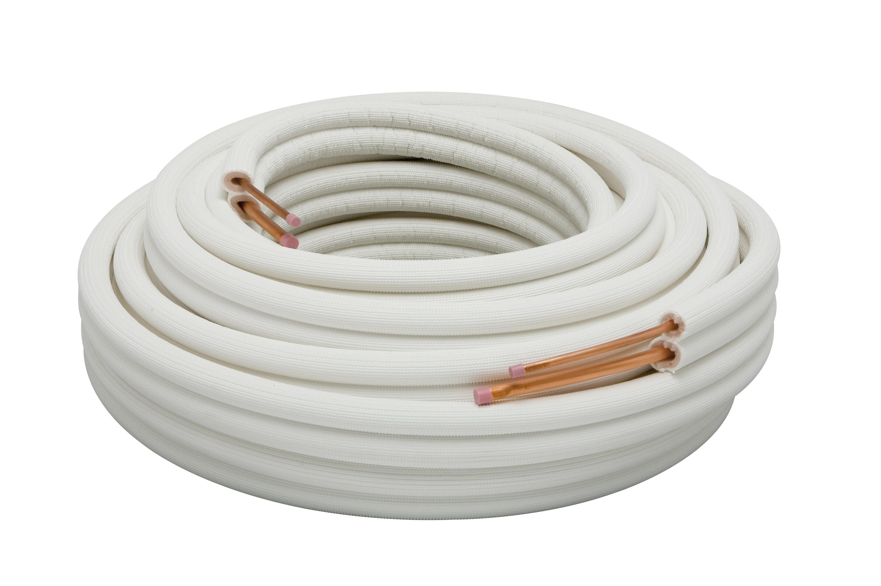 Rollo de 20 metros de tubo de cobre doble aislado, medidas 1/4" y 1/2". aislamiento de polietileno de 6mm de espesor. recomendado para instalaciones de aire acondicionado, compatible con todos los gases refrigerantes (r410a, r407c y r32)