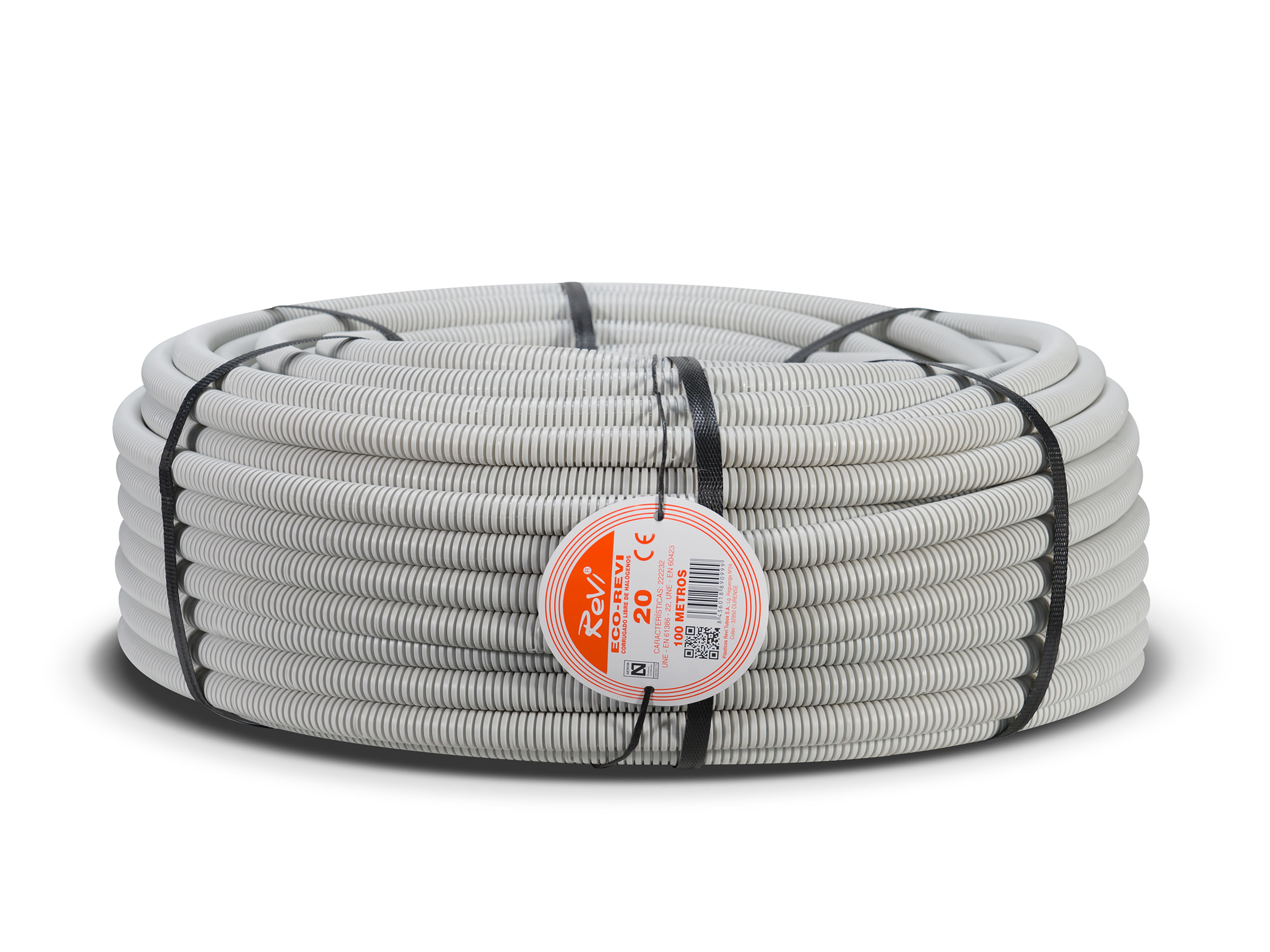 Tubo corrugado libre de halógenos gris 20mm 100m. Adecuados para el montaje empotrado en paredes, techos para la protección de los conductores eléctricos, donde se requiera una baja emisión de humos en caso de incendio.