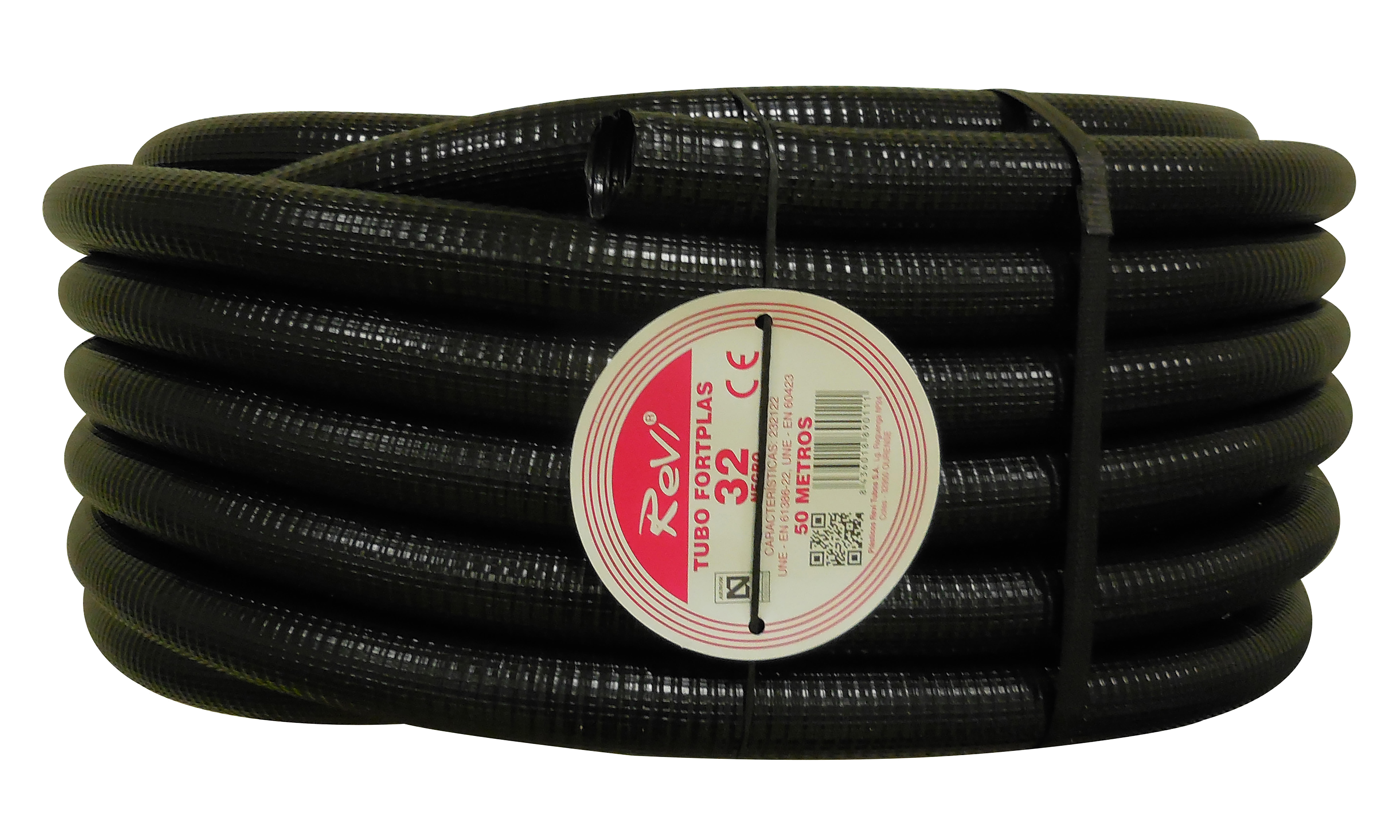 Tubo corrugado reforzado negro 32mm 50m. Resistencia impacto 2j. Doble capa siendo la interior de pvc rigido corrugado y la exterior de pvc flexible. Adecuados para el montaje empotrado en paredes, techos para la protección de los conductores eléctricos.