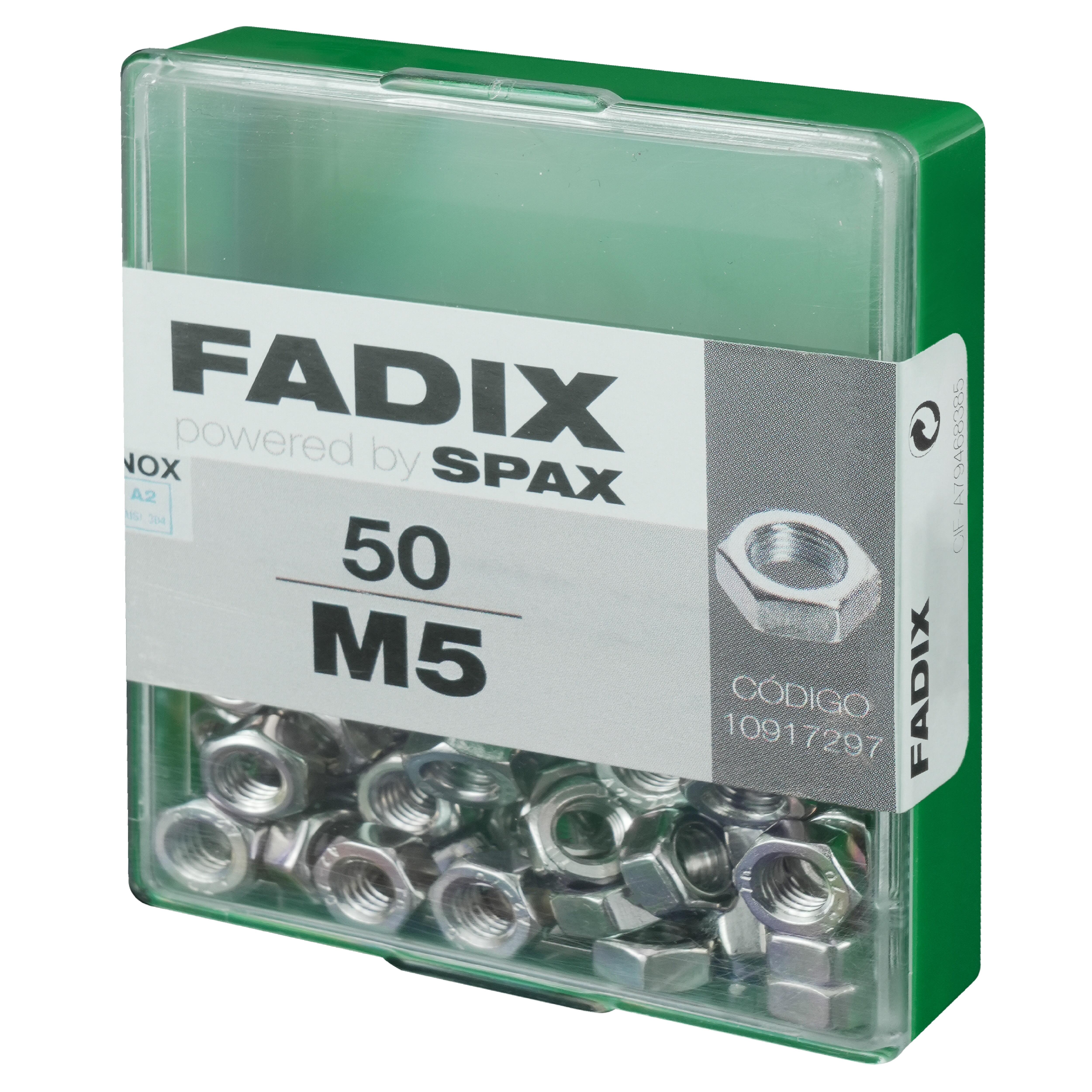 TUERCA HEXAGONAL DIN 934 ACERO INOXIDABLE A2 M5. 50 UDS.