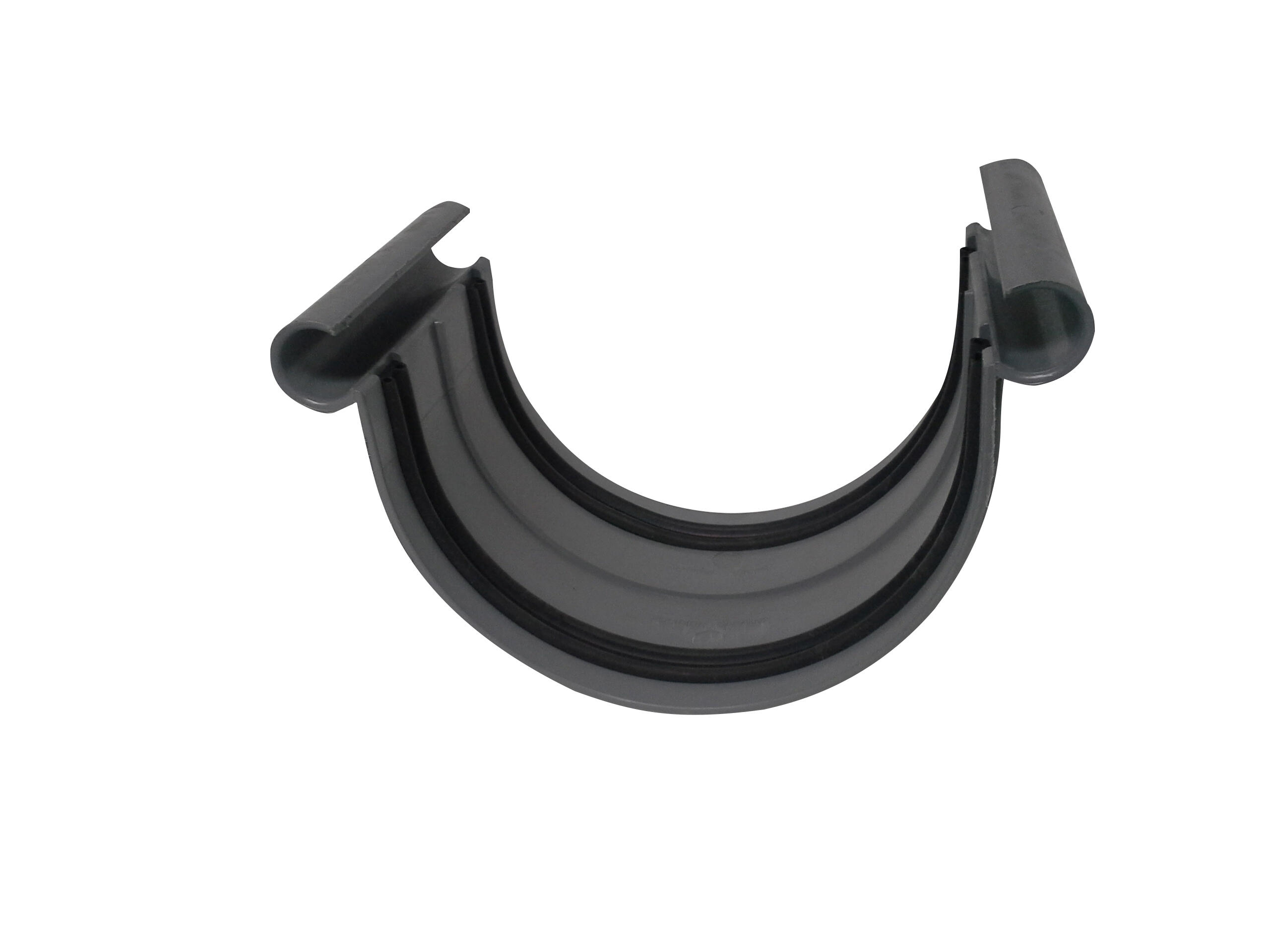 Unión perfil para canalón circular doble voluta. Fabricada en PVC, en color Gris. Desarrollo 270 mm., para bajantes de Ø 90 mm.