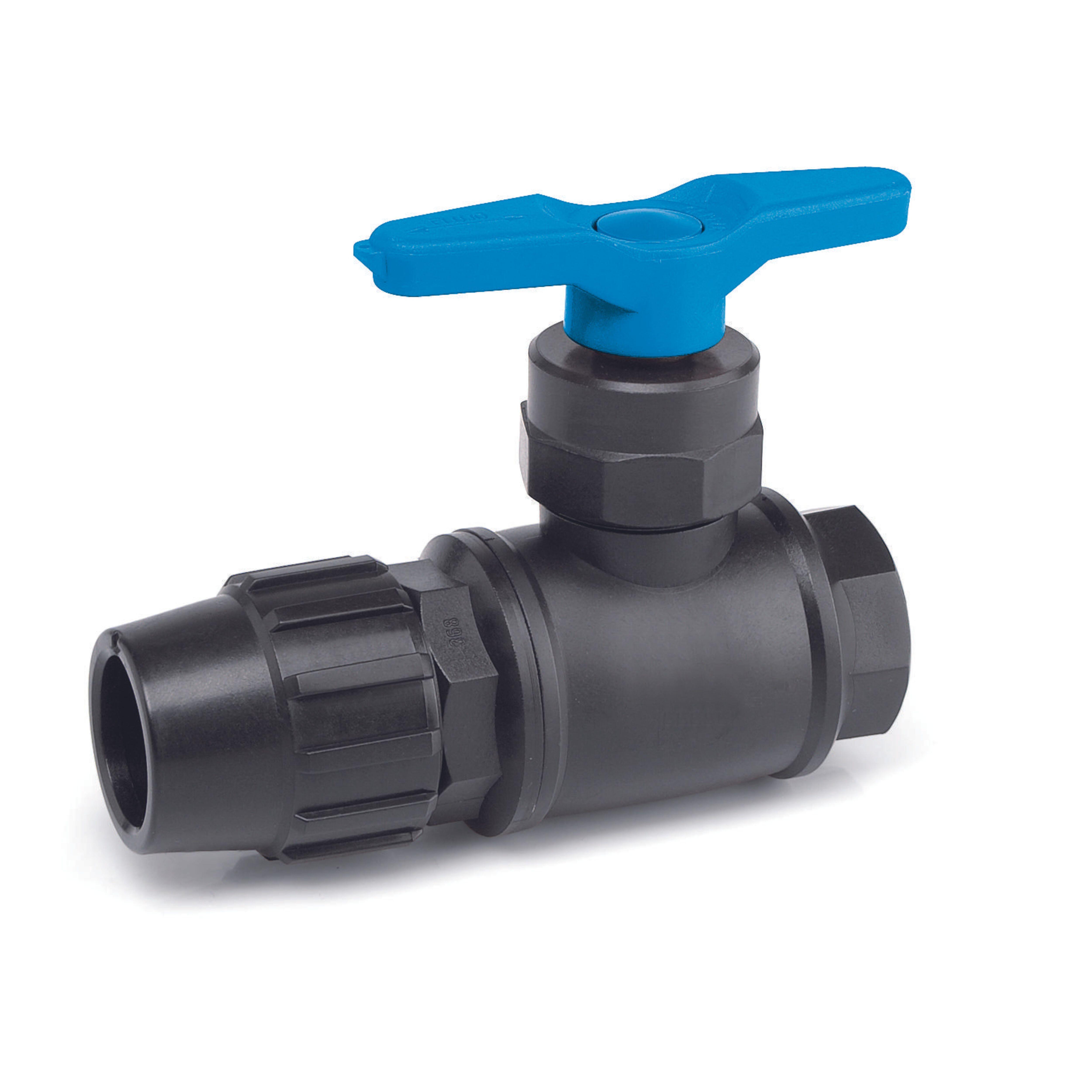 Válvula de polietileno que incluye llave central para apertura de riego manual. Permite unir dos tuberías de polietileno directamente sin necesidad de teflón o otros medios de unión. •Carece de piezas metálicas por lo tanto no hay oxidación, indicado para zonas muy frías ya que es resistente a las heladas. •Indicado para instalaciones agrícolas, ya que resiste la mayorías de los productos químicos. •Muy resistente en aguas duras con mucha cal.