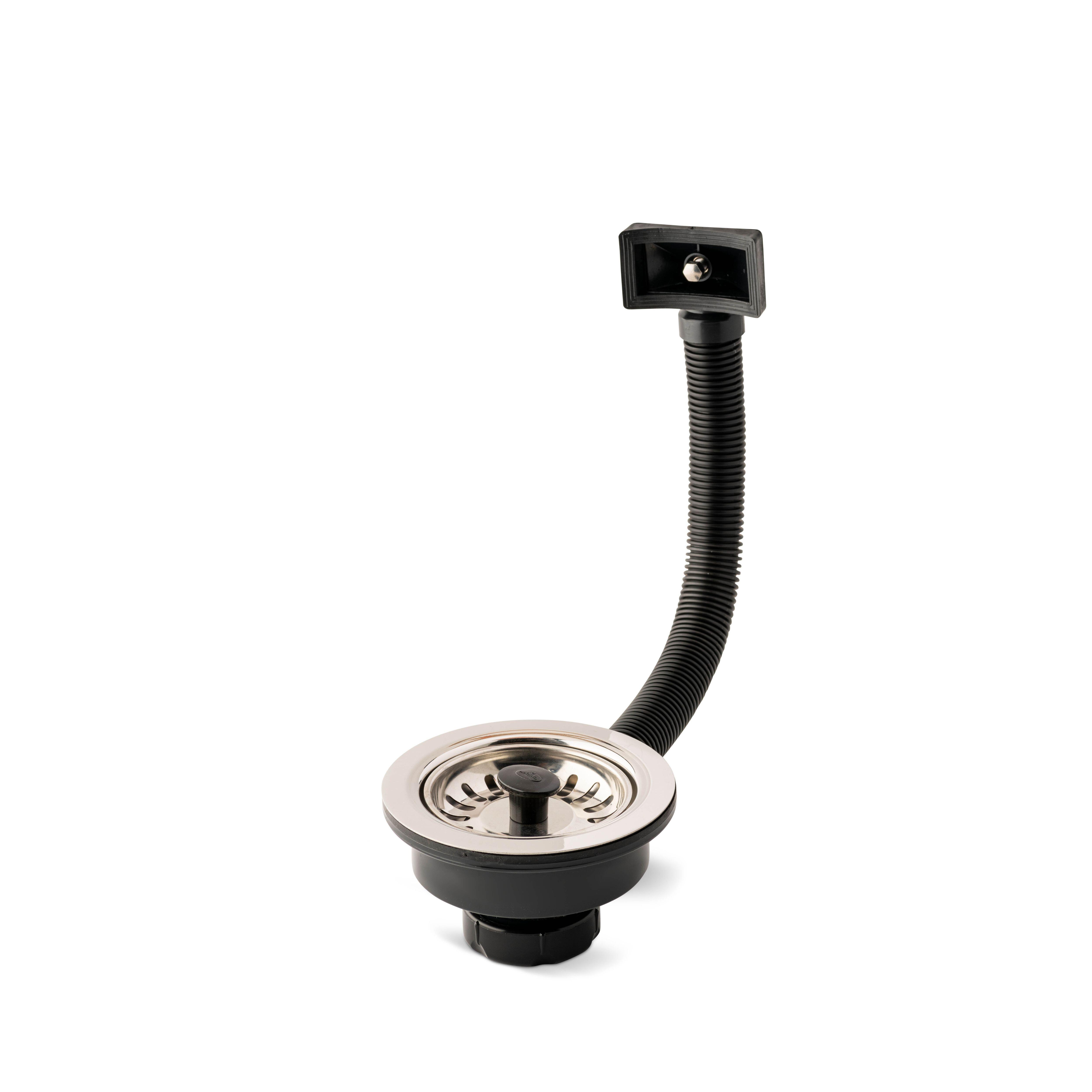 VÁLVULA FREGADERO 115MM CON VÁSTAGO Y REBOSADERO NEGRO