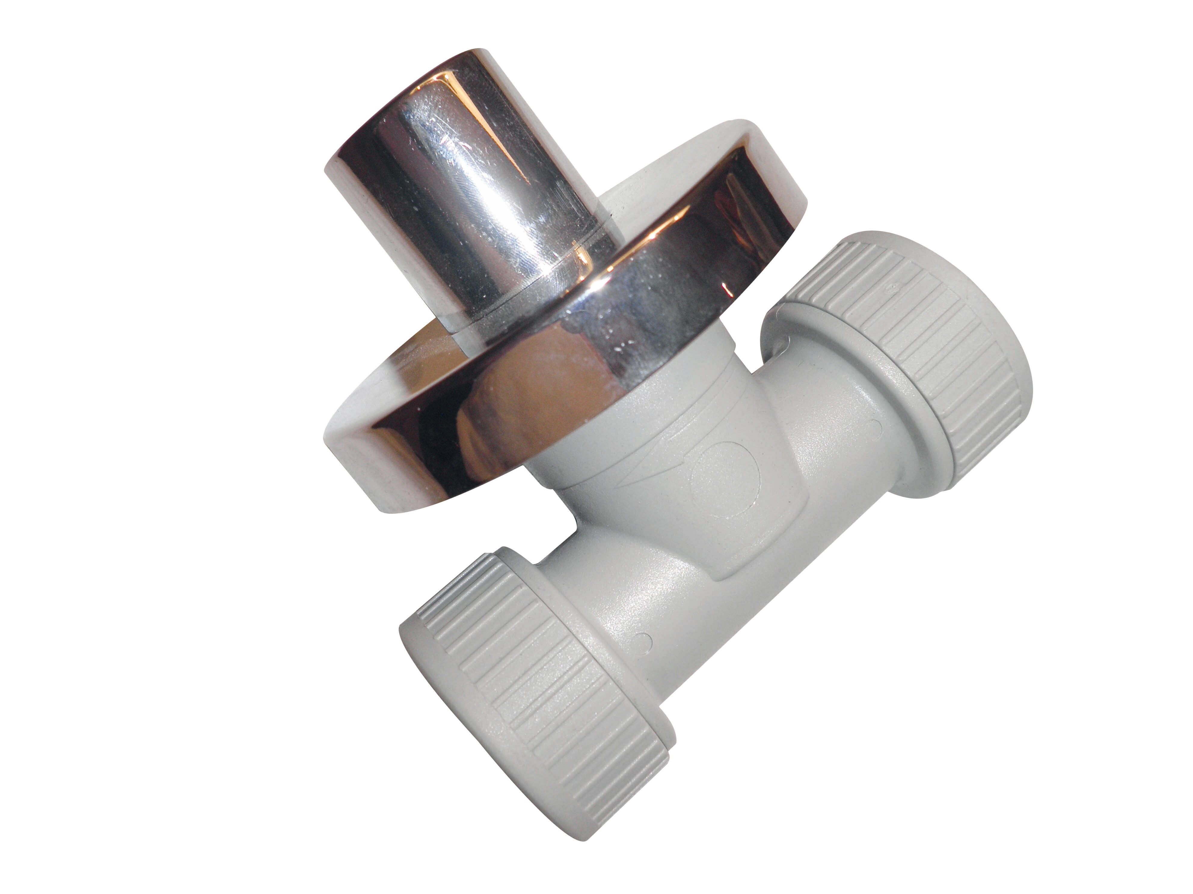 Válvula de paso para empotar con regulación oculta. Casquillos, accionamiento y embellecedor incluidos.