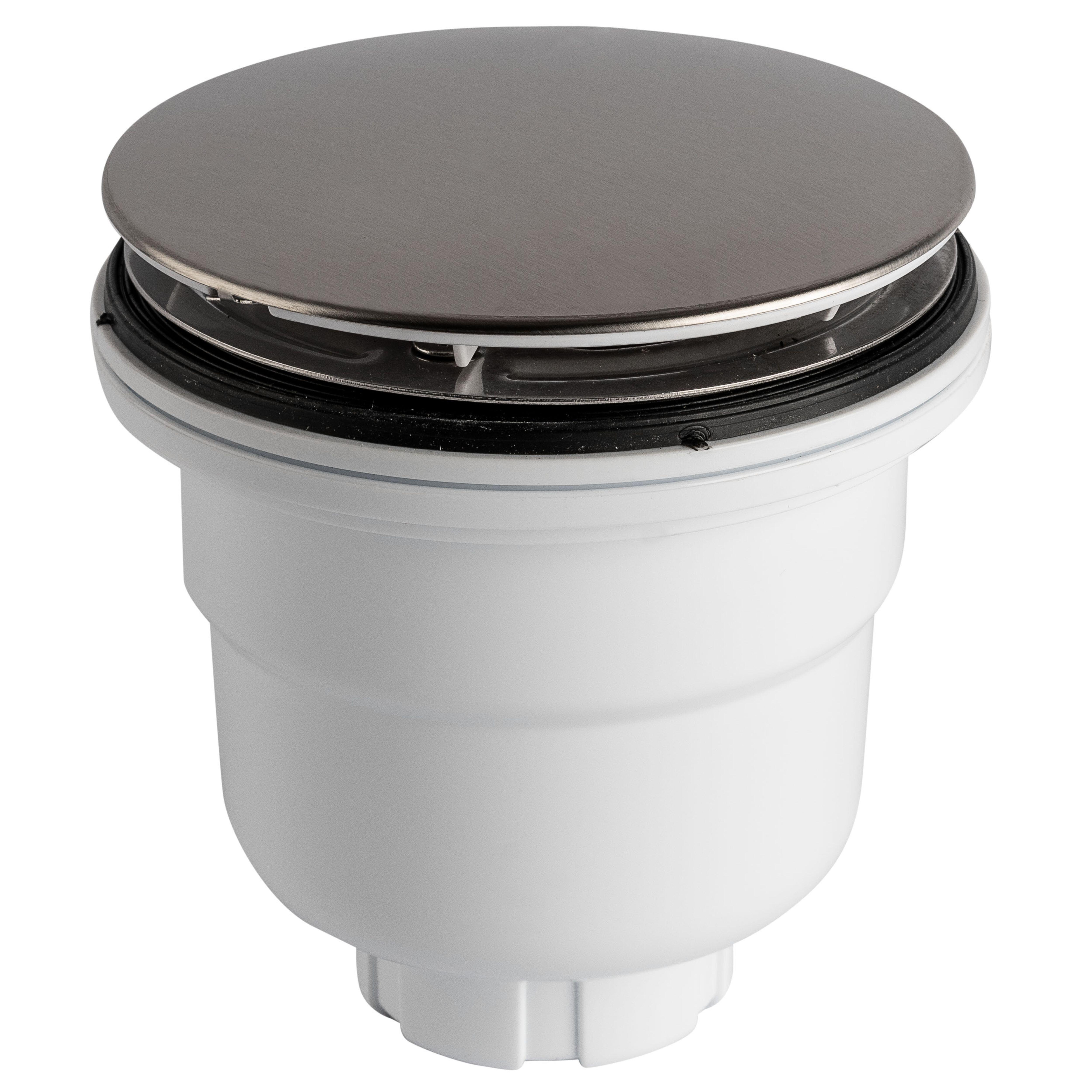 Válvula plato de ducha 115mm con tornillo y junta (1 1/2"), con tornillo, en acabado blanco.