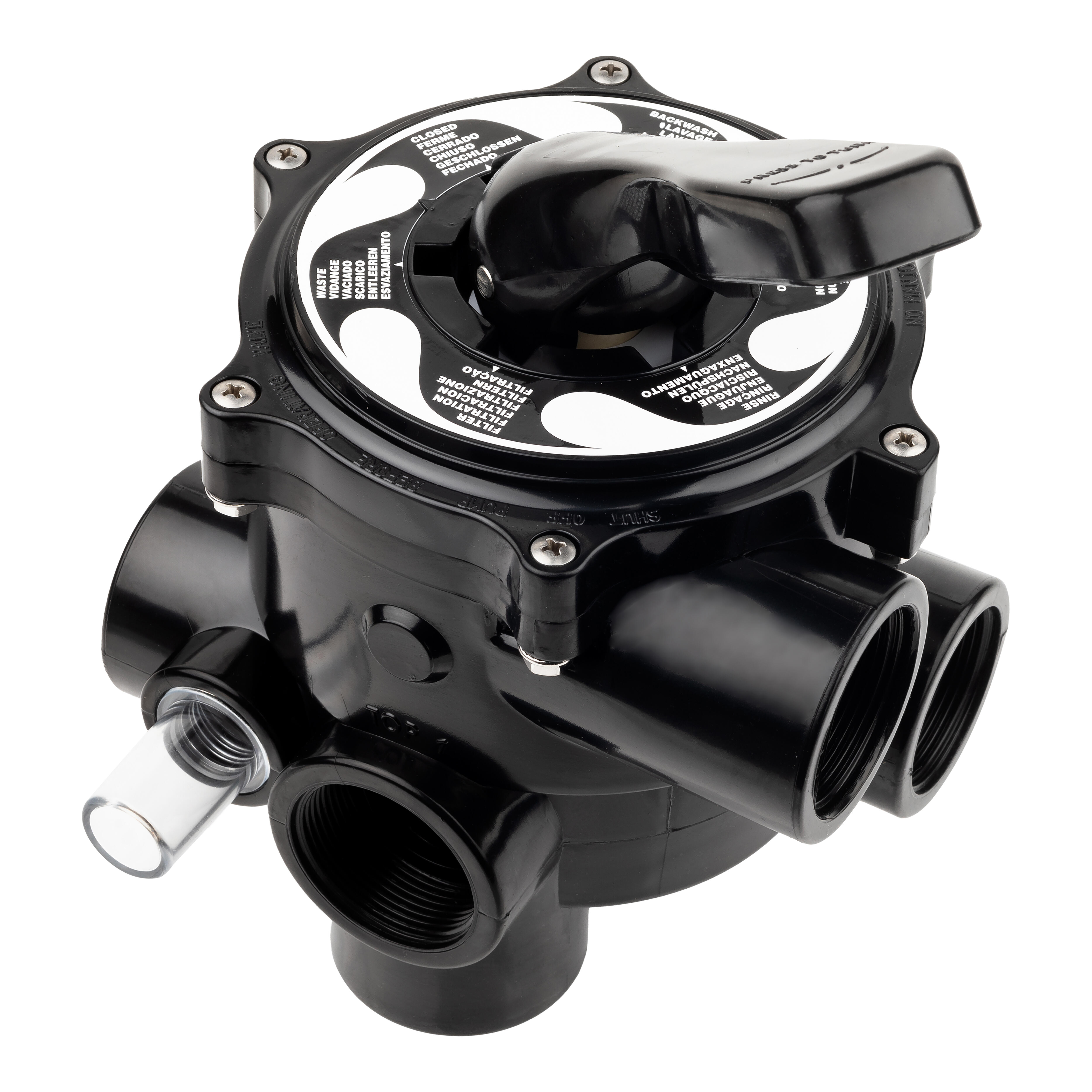 Para la depuración del agua de piscinas residenciales. Gracias a su maneta superior, permiten seleccionar cómodamente la función precisa en cada momento: filtración, vaciado, cerrado, lavado, recirculación y enjuague. También se denominan válvulas multivía.