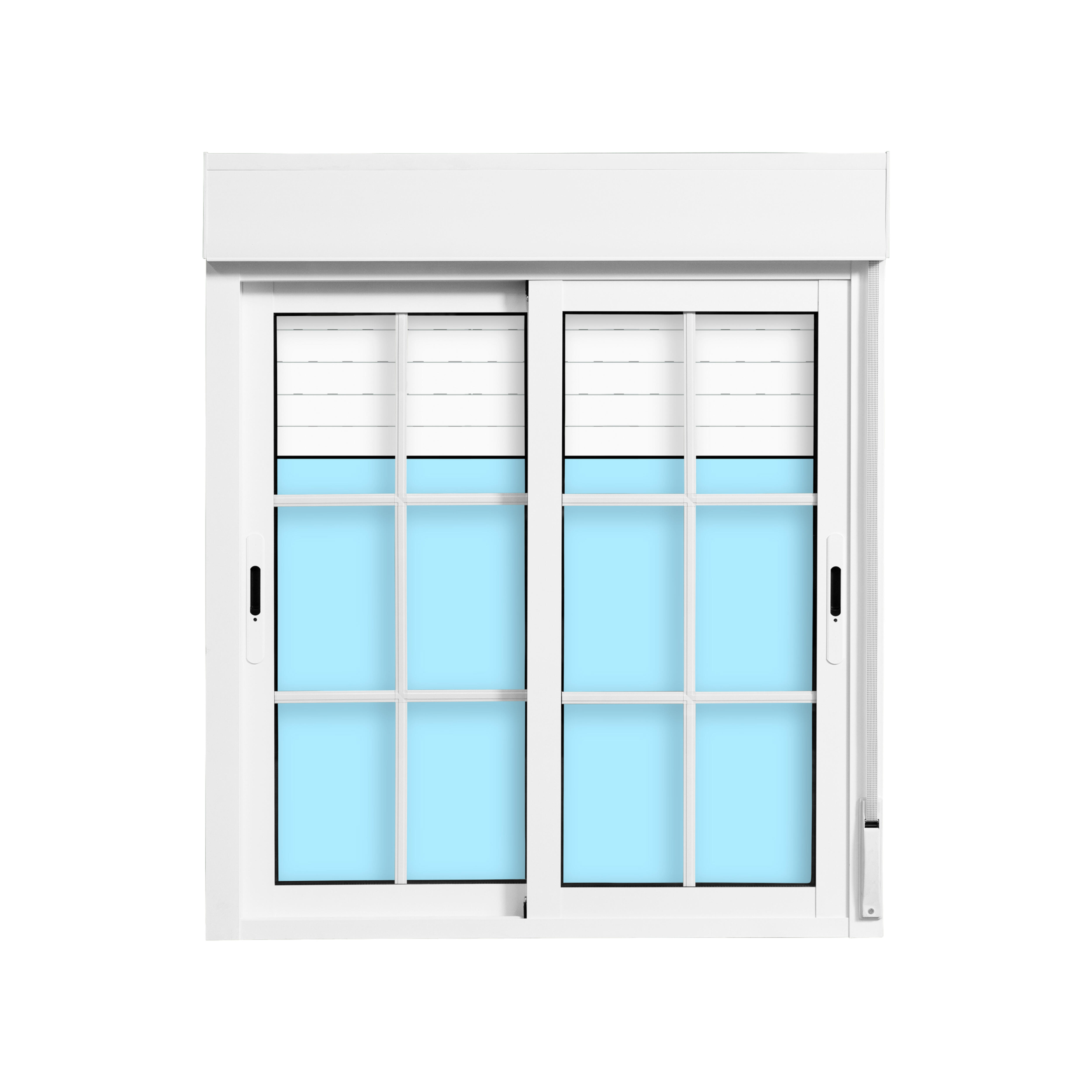 VENTANA ALUMINIO CORREDERA CON PALILLERIA Y PERSIANA BLANCA 100X115CM