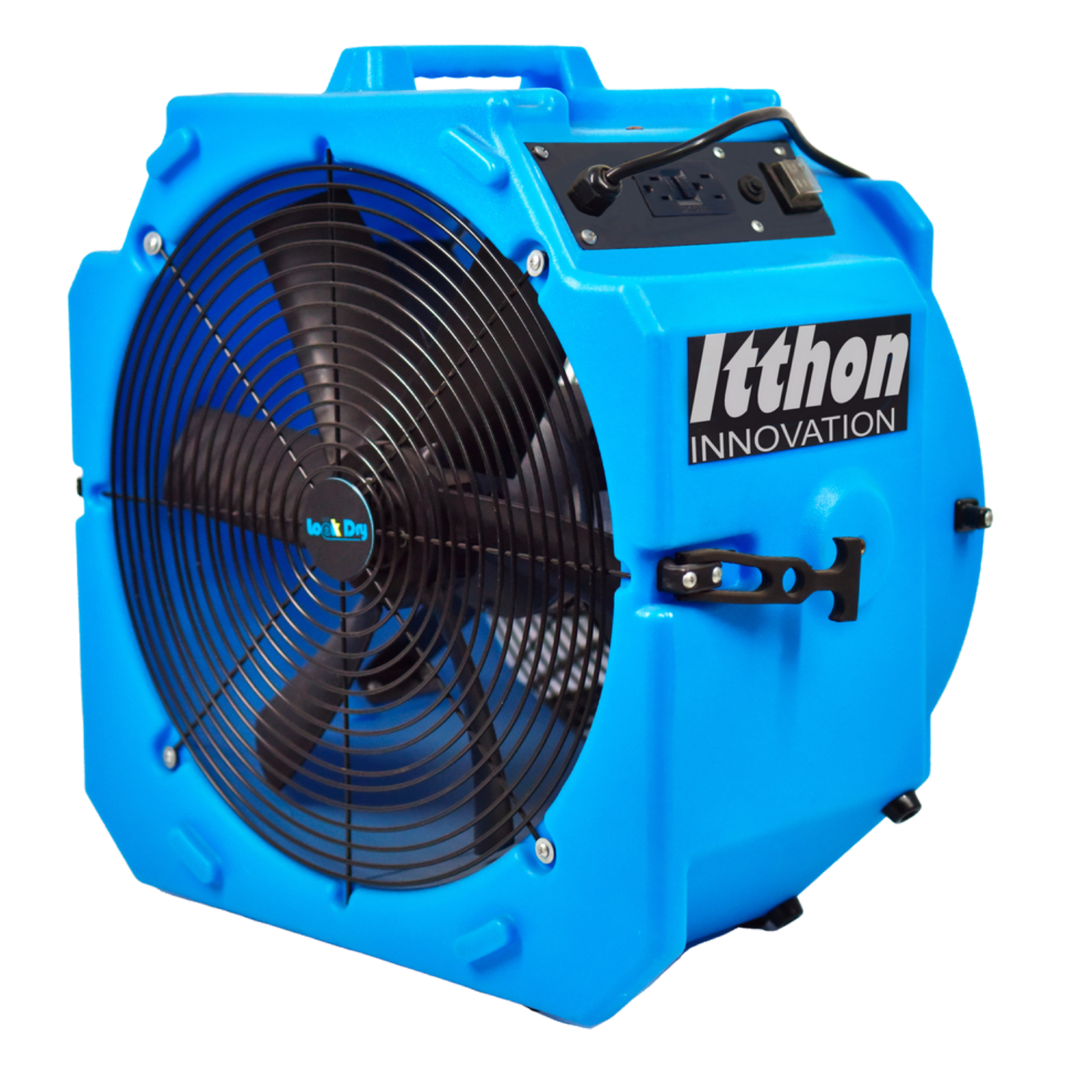 Ventilador industrial de alto caudal, diámetro 36cm. Potencia 350W con 2 velocidades. Compacto y resistente, ideal para secado de suelos, alfombras y ventilación en espacios industriales. Carcasa de polipropileno de alta densidad. Asa superior que facilita su transporte.
