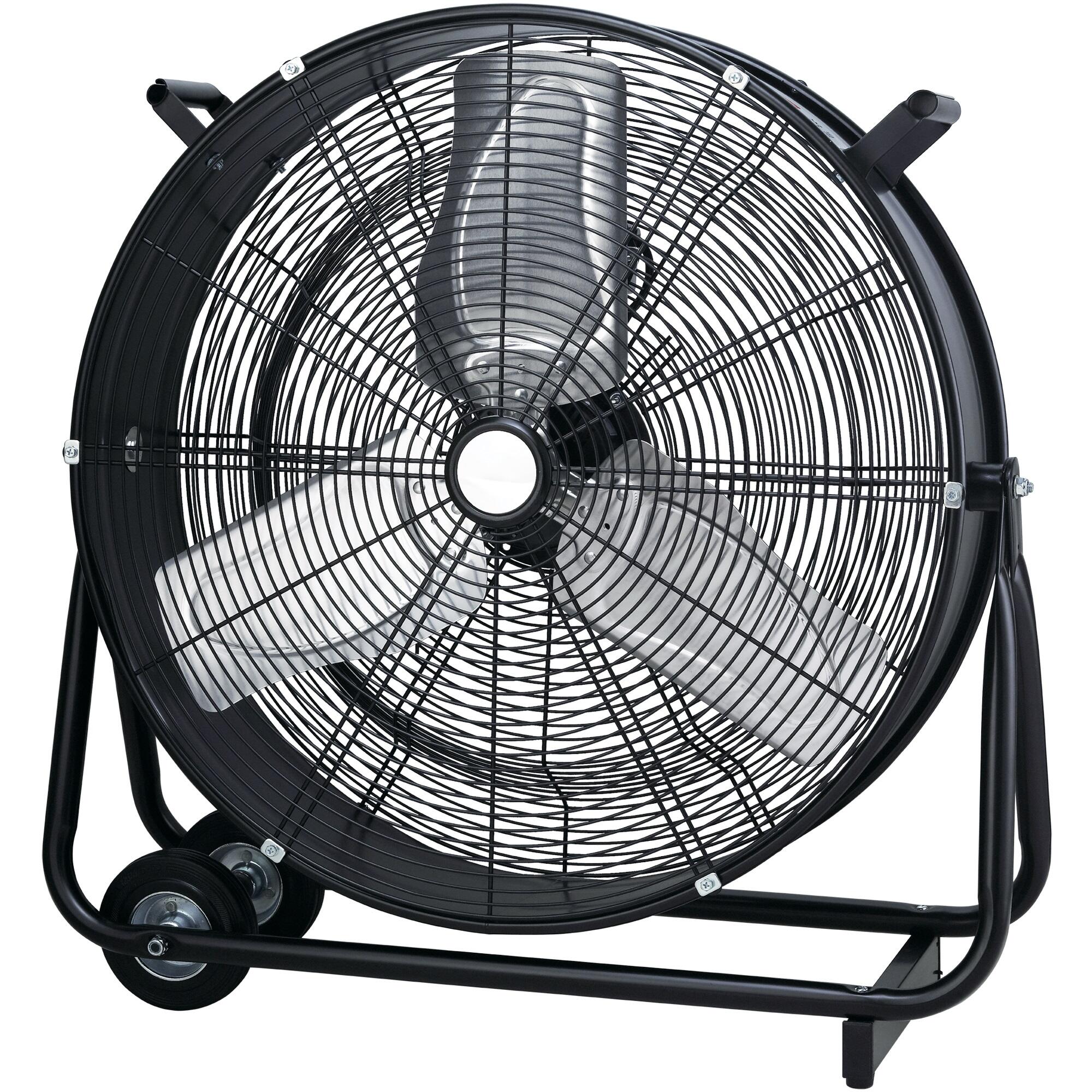 Ventiladores de garaje, taller, almacén o terraza cubierta, especialmente diseñados para grandes superficies. Dos modos de funcionamiento: silencioso (baja velocidad del ventilador) o enfriamiento rápido (alta velocidad del ventilador). Inclinación del ventilador ajustable. Fabricado en metal. Color negro. Dimensiones: 74 x 28 x 75.5cm.