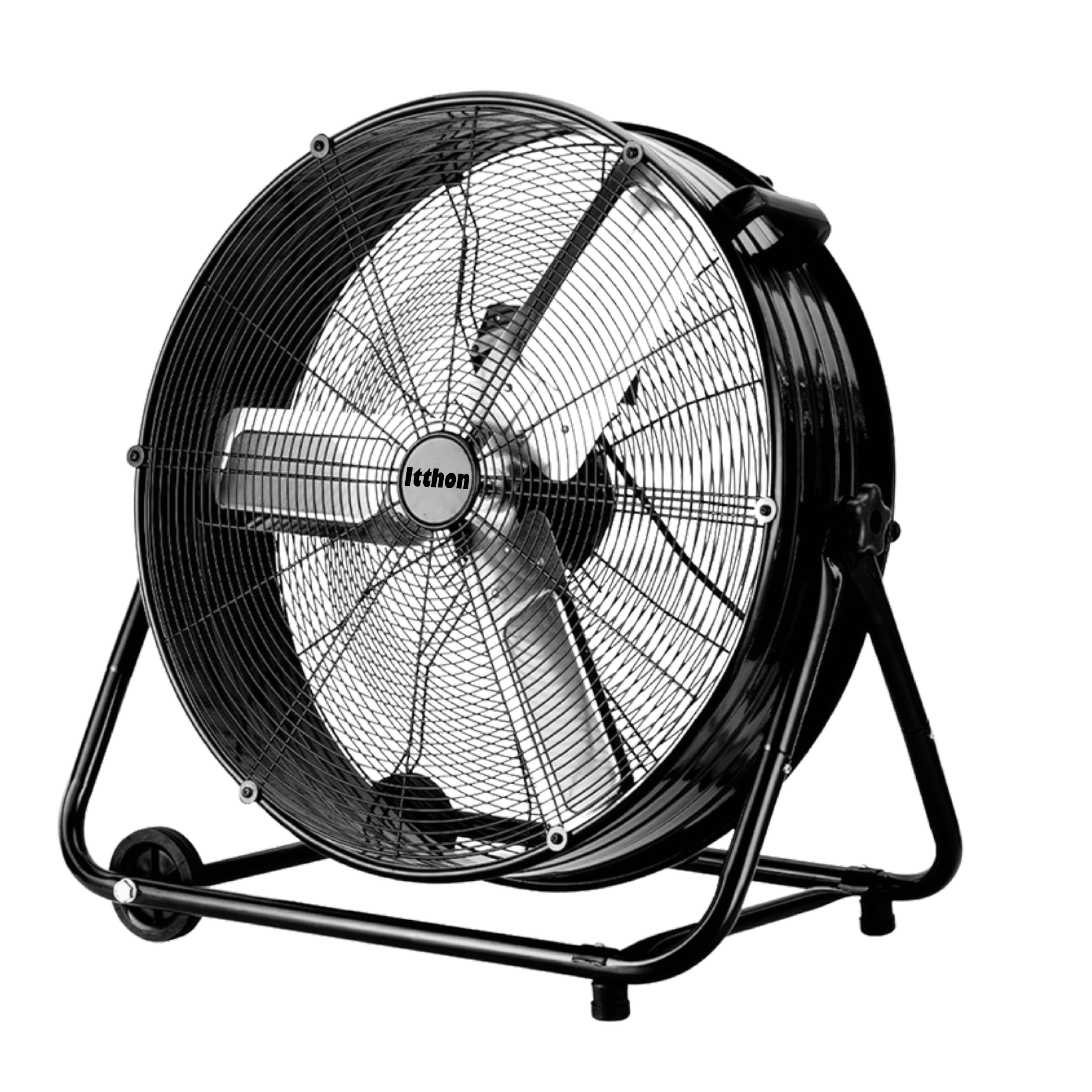 Ventilador industrial de suelo, diámetro 60cm. Potencia 330W, 3 velocidades, inclinación regulable. Construcción robusta con rejillas de hierro, aspas de aluminio y base metálica. Diseñado para uso intensivo en entornos industriales y talleres.