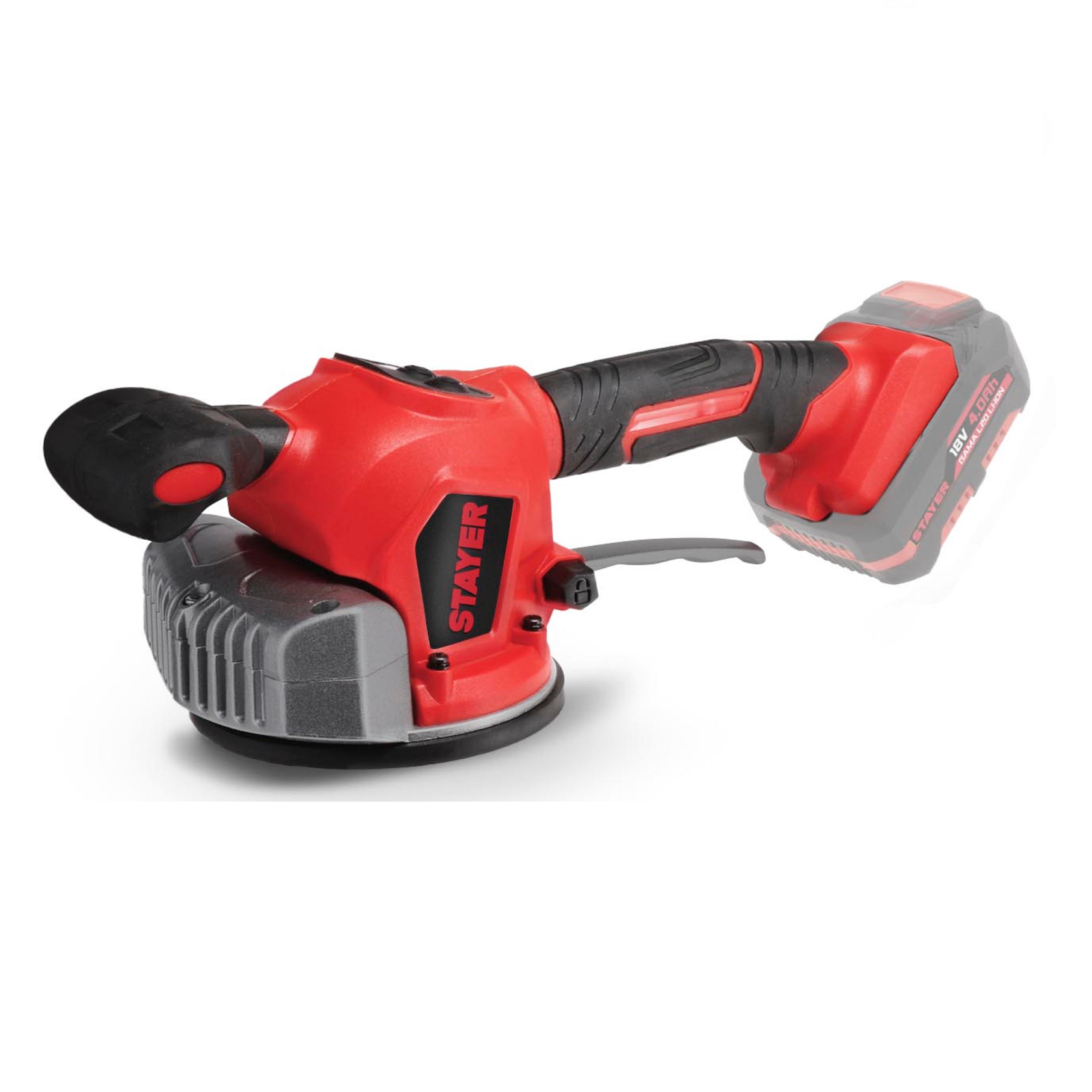 Vibrador porcelánico 130mm 18V con dos baterías Stayer TV L20. 50 Kg de capacidad de fijación. 6 tipos de frecuencia de vibración. Peso 1,9Kg. Mango antideslizante. Cabezal de aluminio. Botón bloqueo de sujeción. Vibración con un botón, fuerza uniforme: puede ajustar la posición del azulejo y mejorar la eficiencia.