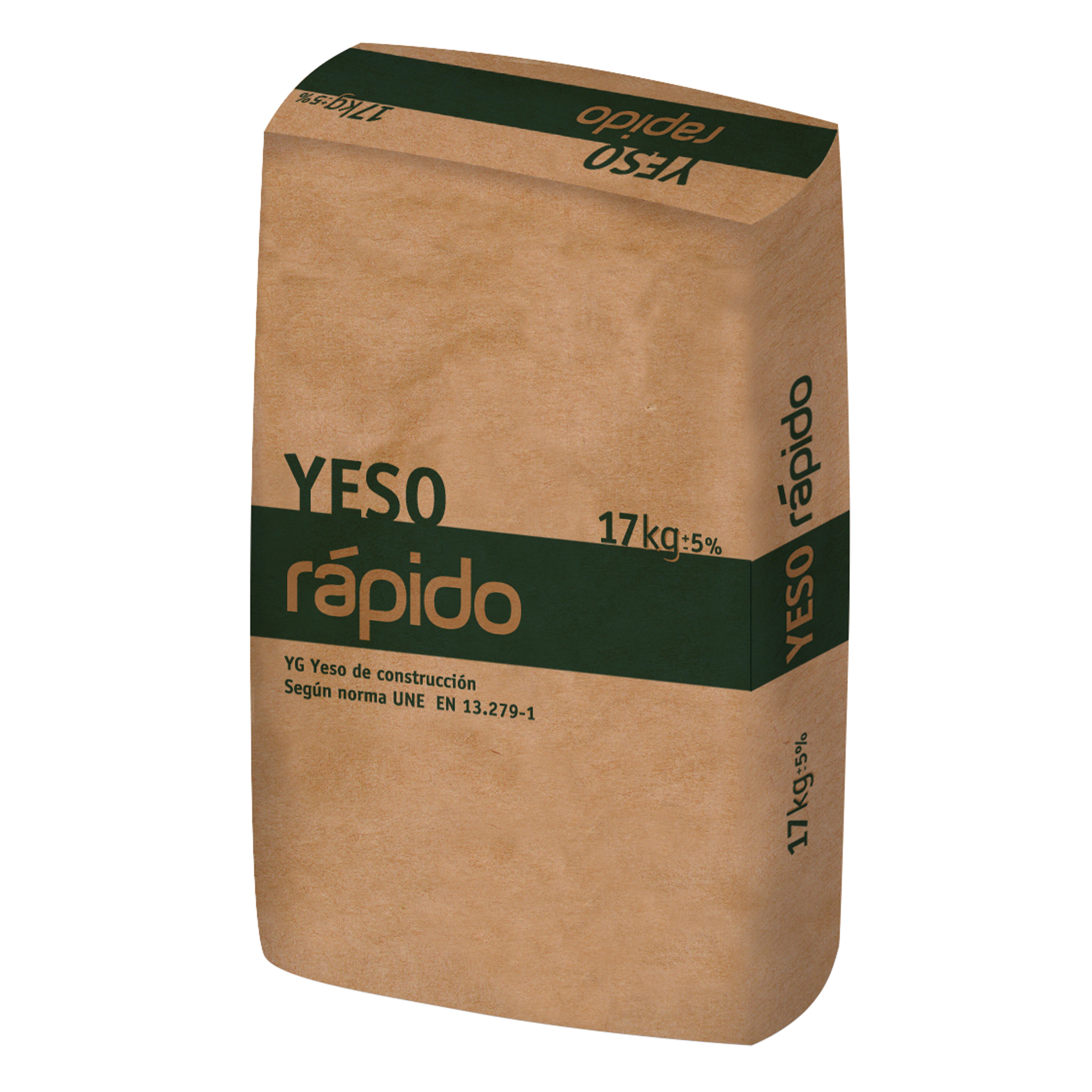 Yeso rápido en polvo constituido por sulfato cálcico semihidratado de eleveda pureza. Granulometría gruesa y de fraguado rápido. Su aplicación ha de ser manual idóneo para todo tipo de obras de albañilería, cierres de pequeños huecos y recibido de elementos auxiliares. Alto rendimiento del material y del operaio. Su formato de 17 kg presta ergonomía.