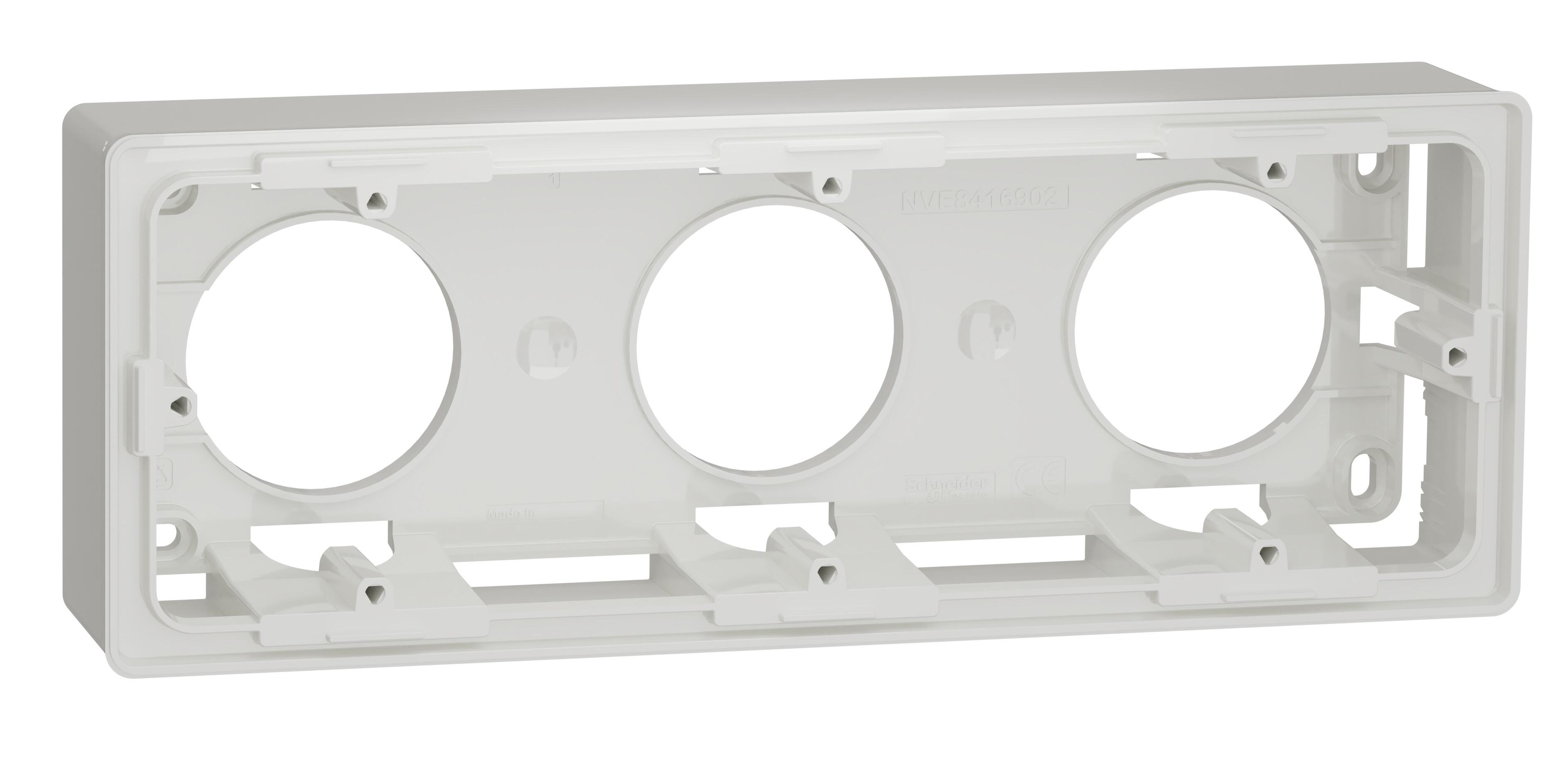 Ver productos de la misma categoríaZócalo de superficie de 3 elementos, caja de montaje sin marco para la composicion de mecanismos de la serie New Unica. Sistema de fijacion por tornillos. Color blanco. Dimensiones 83x83x40mm